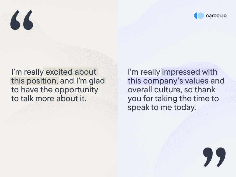 “I’m really impressed with this company’s values and overall culture, so thank you for taking the time to speak to me today.”