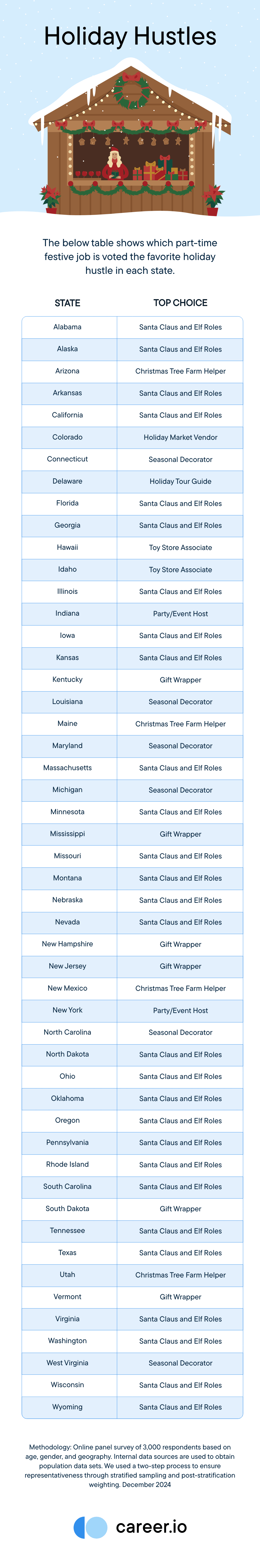 From mall Santas to Christmas tree farm helpers, the holiday season creates unique part-time work opportunities that are enjoyed by many. To find out which festive positions bring workers the most joy—and attract the fiercest competition—we surveyed 3,000 seasonal employees across the country.