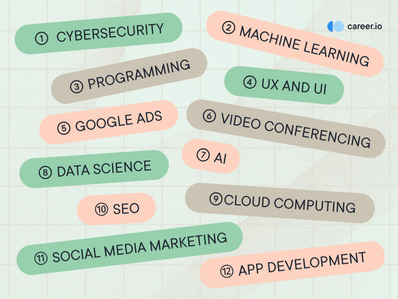 Technology skills like digital marketing, programming, SEO, and cybersecurity remain in high demand and likely will over the next few years.